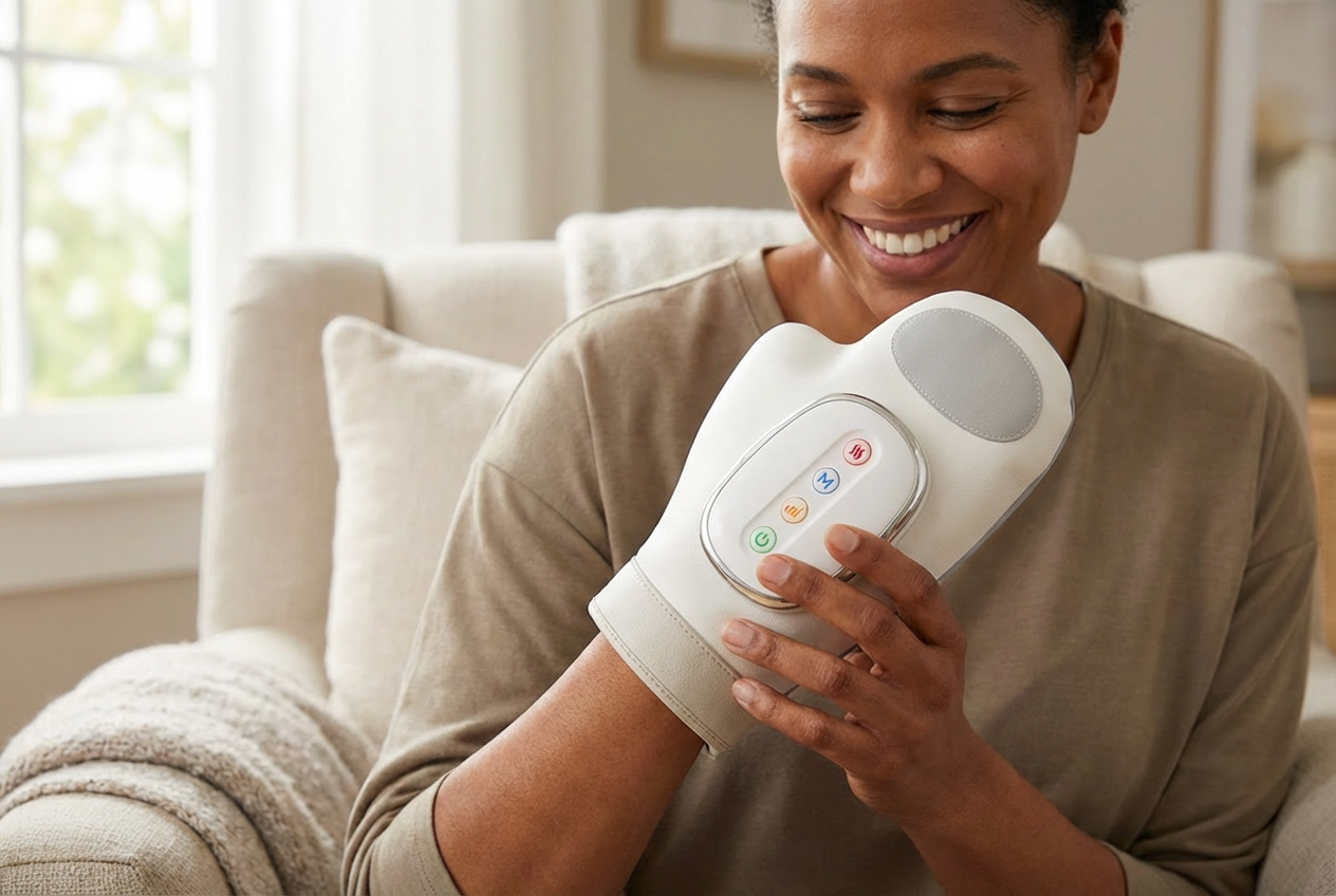 Soft materials and simple controls make it easy to use at home whenever your hands need a moment of relief.