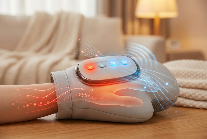 I type all day and my hands feel like rocks by 5pm. Ten minutes with the heat + compression and they loosen up fast. Quiet enough to use on Zoom.
